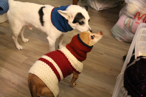 We love our babies. They’re our family and we’d do just about anything for them, so when Ancho came back inside from a trip to go potty and his ears were nearly frozen, I knew I had to turn to my hooks for a solution. His ears weren’t just chilly. They were so cold I could tell it hurt him. I have raynaud’s phenomenon which is a condition that causes my fingers and toes (sometimes my entire foot) to turn white and then purple from lack of blood flow and cold, so I knew that kind of pain he was feeling.